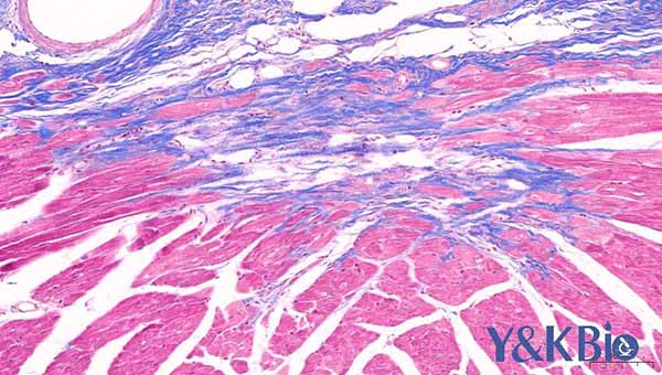 实验简介:masson染色是指用两种或三种阴离子染料混合,胶原纤维呈蓝色,肌纤维呈红色。用来显示组织中纤维以及炎性因子的染色方法之一。