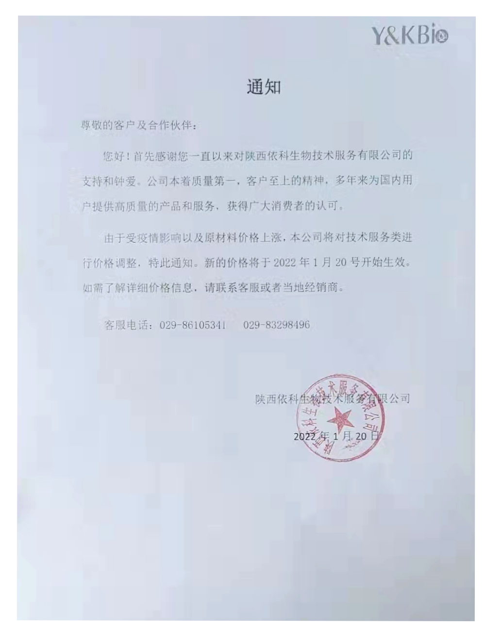 首页 > 新闻资讯 > 内蒙古依科生物技术有限公司|调价通知