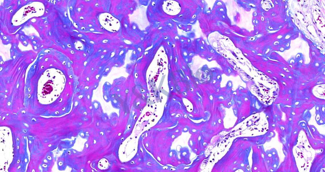 HE染色是组织学中基础、使用广泛的染色手段,相信大家对此都不陌生。HE染色可以区分一般的骨组织结构和细胞,但单一的HE染色并不能区分新生骨组织的数量、胶原以及其他细胞状态,大多数都需要配合其他染色技术共同观察骨愈合状态。特别的,现在都需要对新生组织进行量化研究,HE染色显然是不能满足要求的。